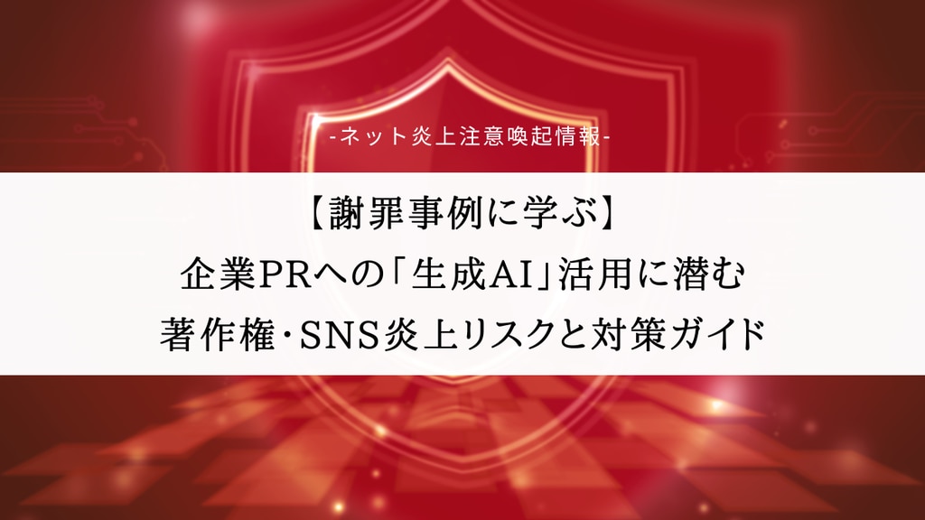 【謝罪事例に学ぶ】企業PRへの「生成AI」活用に潜む著作権・SNS炎上リスクと対策ガイドSNS炎上監視サービス広報リスク管理レピュテーションリスククレーム生成AI2026/04/24著者|株式会社エルテス 久松剛ネット炎上注意喚起情報