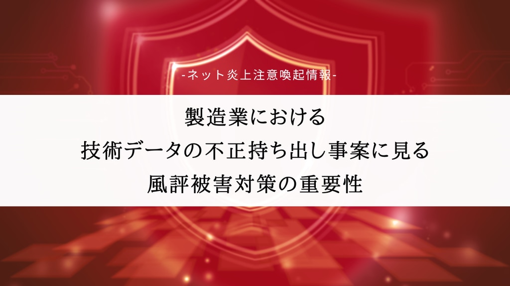製造業における技術データの不正持ち出し事案に見る風評被害対策の重要性SNS炎上監視サービス広報リスク管理レピュテーションリスク不適切投稿クレーム2026/04/28著者|株式会社エルテス 野村省吾ネット炎上注意喚起情報