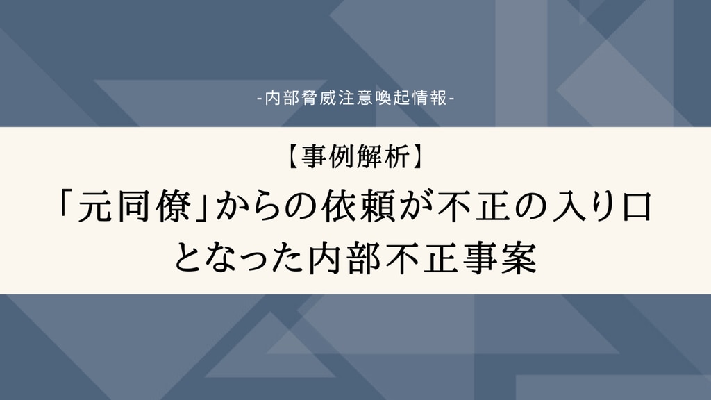【事例解析】「元同僚」からの依頼が不正の入り口となった内部不正事案