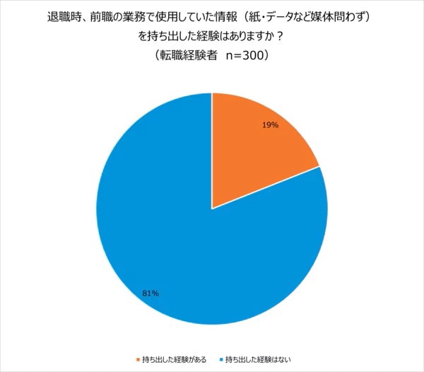 エルテスの「転職時の情報管理アンケート調査」によれば、転職経験者の約5人に1人が前職の情報を持ち出した経験があると回答しており、その多くが「転職先で活用するため」という明確な目的意識を持っていたことからも、手土産転職はどの企業にとっても起こり得るリスクであることが分かります。