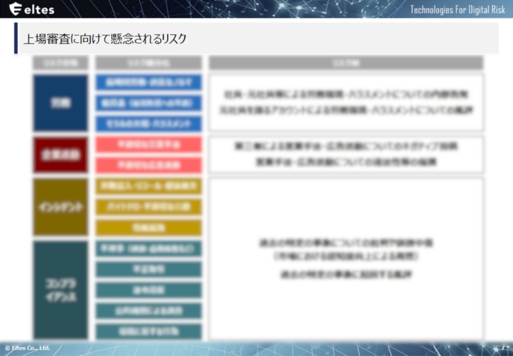 つまり、企業の社会的責任の向上が求められます。その結果、レピュテーション(評判)に関するリスクが高まります。時に、そのレピュテーションがIPO審査に影響を与えてしまいます。