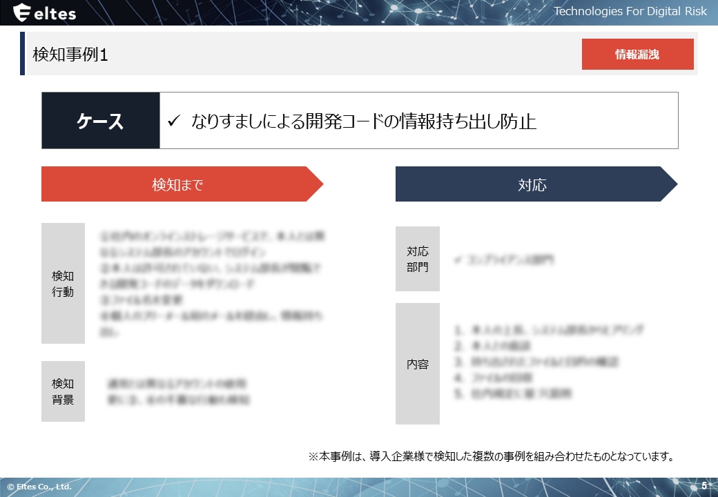 本資料では、サービス提供で実際に検知した複数事例を元に、どのようなログデータから、内部脅威を検知出来るのか、どのように対応されたのか、具体的事例を紹介します。