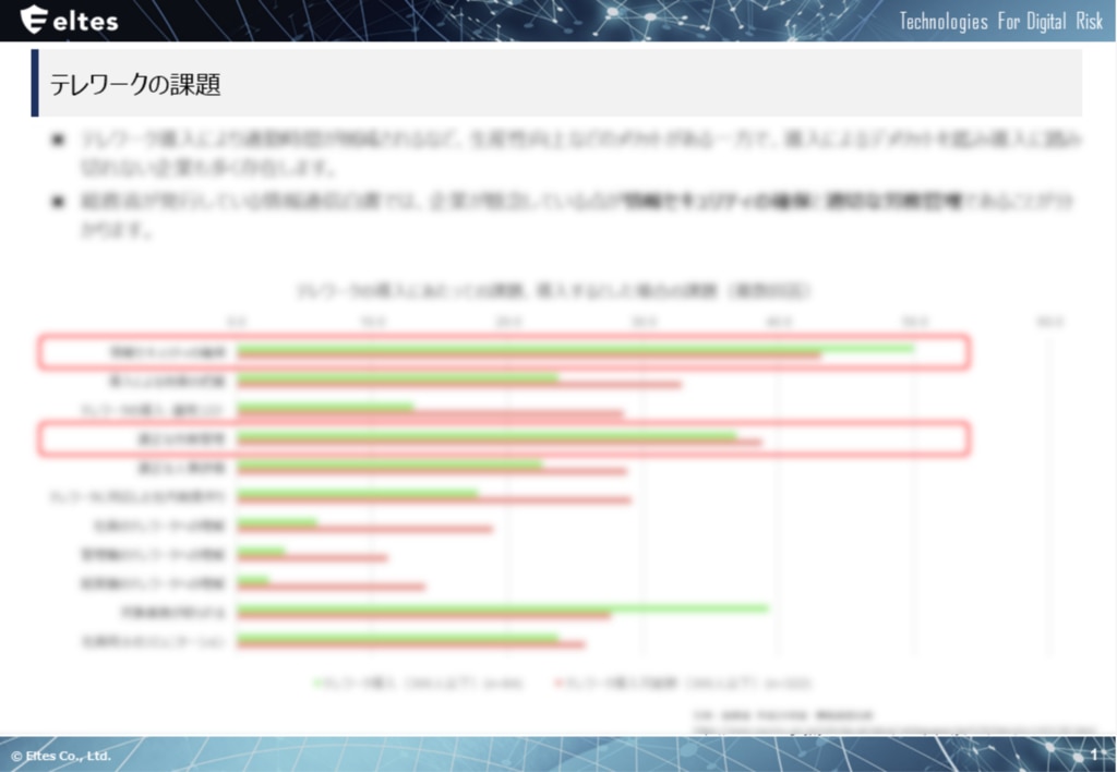 そこで、働き方改革の有効な手段であるテレワークの実情と問題点をまとめました。このレポートを見ることで、テレワークの問題が網羅的に確認することが出来ます。また、問題に対して、取りうる対応策を紹介しています。
